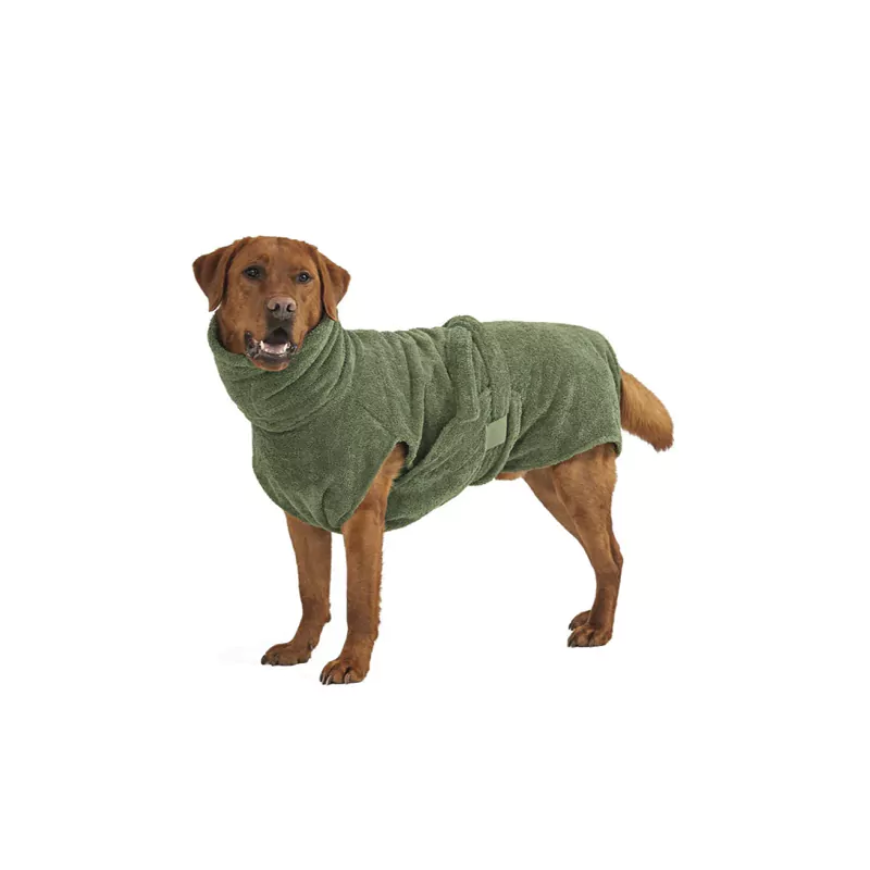 Hundebademantel aus Bio-Baumwolle Olive