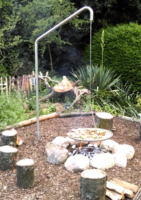 Im Gegensatz zu Dreibeinen ist hier der Grillrost oder ein Biwaktopf von jeder Seite einfach erreichbar.