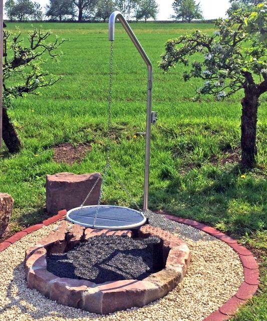 Aus rostfreiem Edelstahl gefertigt, ist der Galgen absolut wartungsfrei und unverwüstlich. Der Grillgalgen wird mit passender Bodenhülse (inkl. Feststellschraube) geliefert! Meist wird die Bodenhülse bis zum Mittelbolzen einbetoniert und das Galgenrohr bis zum Mittelbolzen eingesetzt. Somit lässt sich der Galgen rasch herausziehen und er bleibt um 360° frei drehbar.